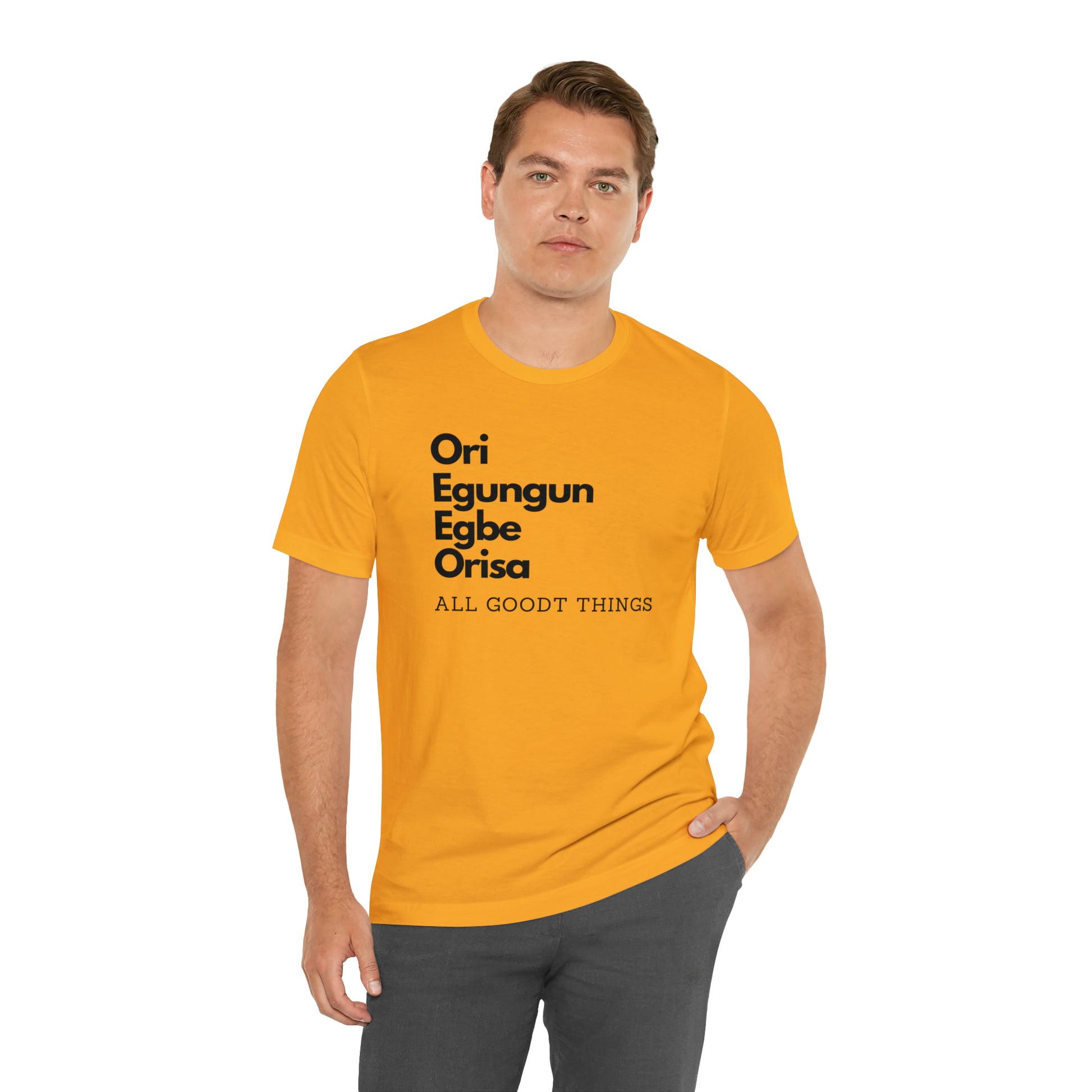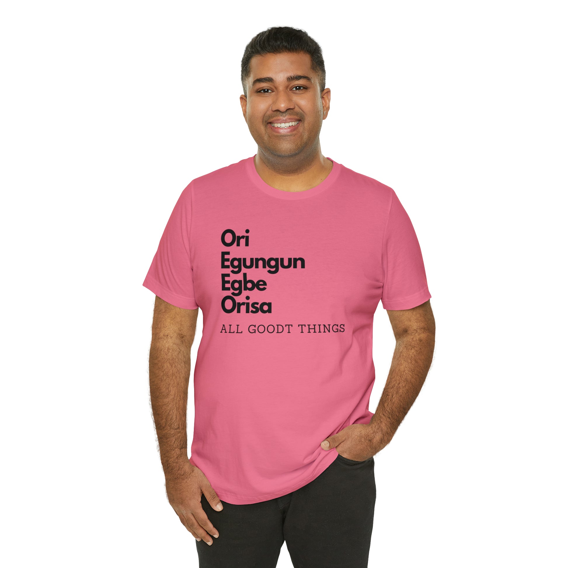 This classic unisex jersey short-sleeve tee fits like a well-loved favorite. Soft cotton and quality print make users fall in love with it over and over again. These t-shirts have ribbed knit collars to bolster shaping. The shoulders have taping for better fit over time. Dual side seams hold the garment's shape for longer.